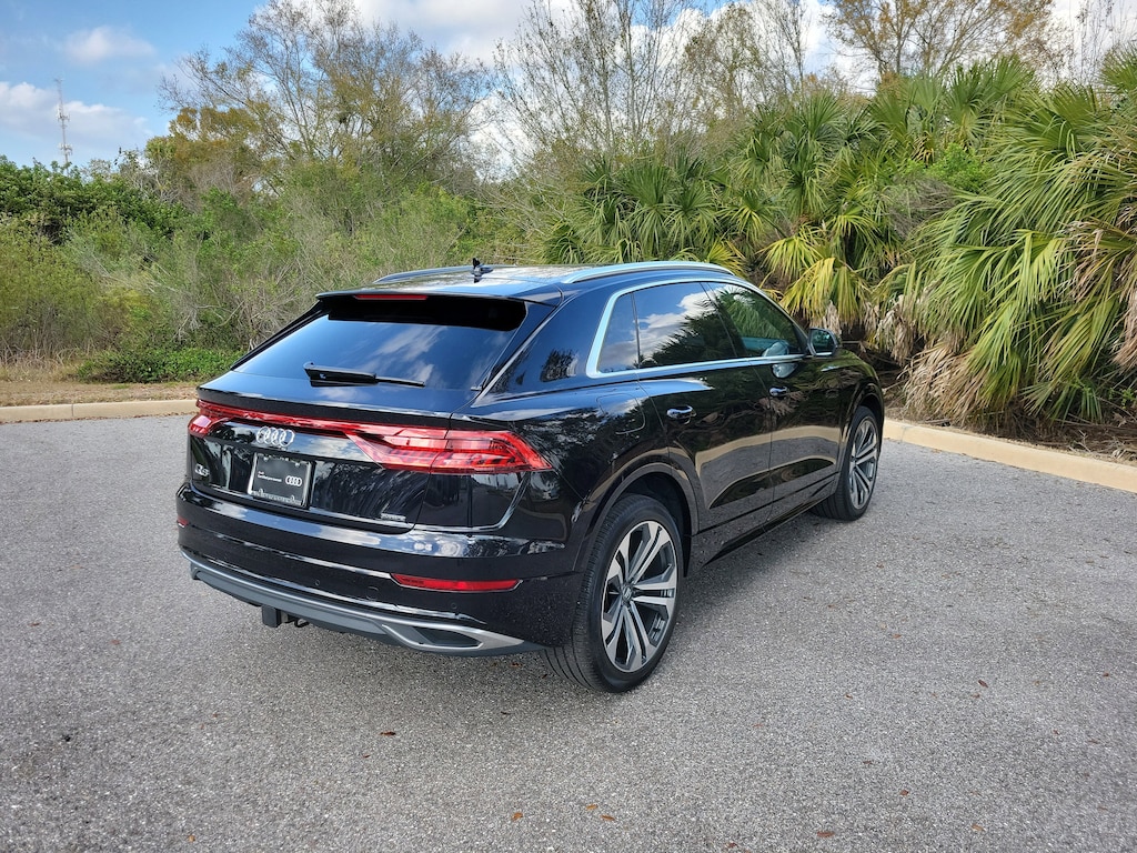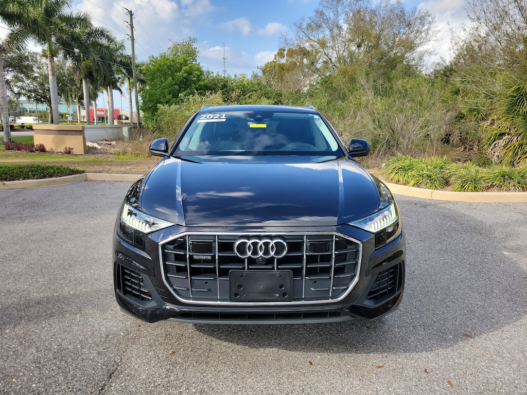 Pricing excludes tax, tag, title and pre-delivery service fee of $999 and private tag agency fee of $24.40. *See below for details..Carfax 1 Owner!..Audi Certified!..Wow this All Wheel Drive Q8 Prestige Quattro includes Luxury & Towing Packages with a Turbocharged 3.0L 335 HP V6..8 Speed Automatic Transmission..Audi Side Assist Blind Spot System..Lane Departure Warning..360 Degree Backup Camera..Rear Cross Traffic Alert..Audi Pre-Sense Basic and Front with Forward Collision Warning and Avoidance System..Audi Active Lane Departure Warning..Audi Adaptive Cruise Assist..HD Matrix-Design LED Headlights..Heated Rear Seats..LED DRL & Taillights..Audi Virtual Cockpit..Head-Up Display..Soft-Close Doors..22" Alloy Wheels..Dual Pane Acoustic Glass..Extended Leather Package..Individual Contour Front Seats.Light Alcantara Headliner..Valcona Leather Seat Trim..4-Zone Climate Control..17 Speaker, Bang & Olufsen 3D Premium Sound System..Contour/Ambient LED Interior Multicolor Lighting Package..Heated 3-Spoke Multifunction Steering Wheel..Heated Auto-Dimming Power Folding Exterior Mirrors..Driver & Passenger Front Seats with Ventilation..4-Way Power Lumbar..Illuminated Door Sills..MMI Navigation System..Panoramic Sunroof..AppleCarplay/Android Auto..Satellite Radio..Bluetooth for Phone and Audio..Adaptive Damping Suspension..Heated Leather Seats..Power Tailgate..USB Ports..LED Headlamps with High Beam Assist..Audi Phone Box with Wireless Charging and Signal Booster..Heated Steering Wheel..Tow Hitch..All power equipment and much more..Over 125 components are inspected by Audi trained technicians to ensure each Audi Certified pre-owned vehicle is in optimal condition. Only after this comprehensive dealer inspection are we confident in backing the vehicle with our Audi Certified pre-owned Limited Warranty, which is more than a seal of approval, it's a badge of honor. When the Audi New Vehicle Limited Warranty expires, the Audi Certified pre-owned Limited Warranty becomes effective and provides coverage for a period of of one year or 20,000 miles, whichever occurs first. (See dealer for details)..Call Our Sales Team Now at 941-922-0000 for More Info, a Test Drive Appointment or to have a Custom Video Sent to you on this Car. Fast Out of State Shipping Available!..All pre-owned cars regardless of make and model are driven and evaluated by our highly qualified service personnel. We invite you to come see our brand new state of the art dealership and take a test drive with one of our highly trained Audi Brand Specialists. You will be glad you did..What the reviews say..Athletic enough to satisfy enthusiasts, refined enough to coddle passengers, great mix of luxury and technology. The 2021 Audi Q8 has one less row of seats and a lot more style than the three-row Q7 SUV that it is based on. With a coupe-like profile and bolder bodywork, the two-row Q8 kicks off the company's line of ultimate crossovers. The Q8 also provides a carlike driving experience that is both athletic and refined. Its cabin is beautifully appointed and solidly put together in typical Audi fashion. While it holds fewer people and has less cargo space than its three-row sibling, the 2021 Q8 is best suited for those who prioritize sportiness, luxuriousness, and style. Audi provides every Q8 with a turbocharged 3.0-liter V-6 that makes 335 horsepower and 369 lb-ft of torque. It pairs with an eight-speed automatic transmission and Quattro all-wheel drive. A 48-volt hybrid-assist system aids stop-start operation, which was smooth and quiet during our experience. Following the guidelines established by other crossover "coupes," the Q8 provides high-riding capability with sporty driving responses. In typical fashion, Audi has crafted a sophisticated and sturdy environment inside the Q8. The materials are premium, and the panels are expertly aligned. In Edmunds testing, 0-60 mph came in 5.6 seconds. That's quick. The Q8 handles admirably through tight and sweeping corners alike.