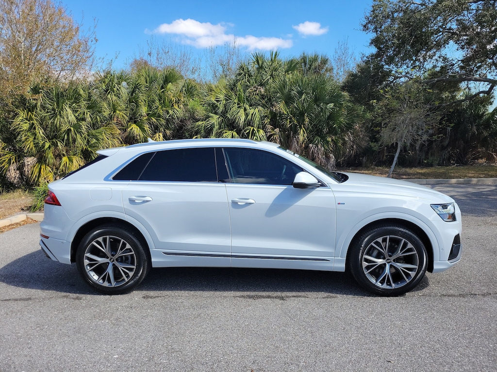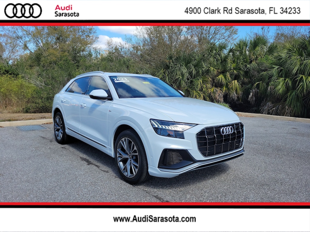 Pricing excludes tax, tag, title and pre-delivery service fee of $999 and private tag agency fee of $24.40. *See below for details..Audi Certified!..This Low Mileage, All Wheel Drive Q8 Premium Plus Quattro includes S-Line Style Package with a Turbocharged 3.0L 335 HP V6..8 Speed Automatic Transmission..Audi Side Assist Blind Spot System..Lane Departure Warning..360 Degree Backup Camera..Rear Cross Traffic Alert..Audi Pre-Sense Basic and Front with Forward Collision Warning and Avoidance System..Audi Virtual Cockpit..21" Alloy Wheels..4-Zone Climate Control..Bang & Olufsen 3D Premium Sound System..Contour/Ambient LED Interior Multicolor Lighting Package..Heated 3-Spoke Multifunction Steering Wheel..Heated Auto-Dimming Power Folding Exterior Mirrors..Top View Camera System..4-Way Power Lumbar..Illuminated Door Sills..Navigation System..Panoramic Sunroof..AppleCarplay/Android Auto..Satellite Radio..Bluetooth for Phone and Audio..Adaptive Damping Suspension..Power Adjustable, Heated/Ventilated Leather Seats..Power Tailgate..USB Ports..HD Matrix-Design LED Headlamps with High Beam Assist..Audi Phone Box with Wireless Charging and Signal Booster..Heated Steering Wheel..Tow Hitch..All power equipment and much more..Over 125 components are inspected by Audi trained technicians to ensure each Audi Certified pre-owned vehicle is in optimal condition. Only after this comprehensive dealer inspection are we confident in backing the vehicle with our Audi Certified pre-owned Limited Warranty, which is more than a seal of approval, it's a badge of honor. When the Audi New Vehicle Limited Warranty expires, the Audi Certified pre-owned Limited Warranty becomes effective and provides coverage for a period of one year or 20,000 miles, whichever occurs first. (See dealer for details)..Call Our Sales Team Now at 941-922-0000 for More Info, a Test Drive Appointment or to have a Custom Video Sent to you on this Car. Fast Out of State Shipping Available!..All pre-owned cars regardless of make and model are driven and evaluated by our highly qualified service personnel. We invite you to come see our brand new state of the art dealership and take a test drive with one of our highly trained Audi Brand Specialists. You will be glad you did..What Edmunds.com says..Comes well equipped with many standard features. Comfortable ride. High-quality cabin materials. Front and rear seats offer all-day comfort. Audi's flagship Q8 SUV is the most expensive non-electric SUV in the brand's lineup. It's a sporty version of the three-row Q7, but it only offers two-row seating. Besides being comfortable and stylish, the Q8 provides plenty of power and space, and it packs impressive tech. Its digital instrument panel and dual-touchscreen infotainment system lend to its high-tech and modern-looking interior. The Q8 also has a generous towing capacity. The Audi Q8 backs its coupe-like styling with pleasing performance and plenty of luxury and technology features. In Edmunds' testing, 0-60 mph came in 5.6 seconds. That's quick. The Q8 handles admirably through tight and sweeping corners alike. The suspension is properly buttoned-down in Sport mode, and body roll is nicely controlled. Like any good luxury SUV, the Q8 provides comfort in spades. We love the front seats' wide range of adjustment and cushy armrests. The Q8's suspension manages both compliance and body control very well. The Q8 offers plenty of room. The rear seating is surprisingly opulent, with excellent legroom, lots of toe clearance and ample headroom. The Q8's cabin tech looks fully modern and comes with plenty of features. We like that it supports wireless smartphone integration, and the Digital Cockpit instrument panel is both useful and crisp-looking. The Q8's design preserves most of the cargo space and offers people something attractive and cool to look at. The Q8 exudes quality from the inside out.