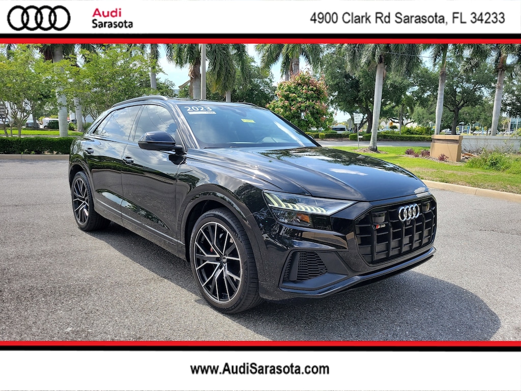 Pricing excludes tax, tag, title and pre-delivery service fee of $999 and private tag agency fee of $24.40. *See below for details..Audi Certified!..Carfax 1 Owner!..Wow this All Wheel Drive SQ8 Prestige Quattro includes Black Optic Package with a Turbocharged 4.0L 500 Horsepower V8..8 Speed Automatic Transmission..Night Vision Assist..Audi Side Assist Blind Spot Info with Rear Cross Traffic Alert..Topview Camera System..Audi Active Lane Departure Warning..Audi Adaptive Cruise Assist..Intersection Assist..Lane Keep Assist..Traffic Sign Recognition..Audi Pre-Sense Basic and Front..Alu Touch-Sensitive Interior Buttons..Executive Package..Contour/Ambient LED Interior Lighting Package..Power Adjustable, Heated/Ventilated Leather Seats..Power Soft-Close Doors..Dual-Pane Acoustic Glass..Heated Rear Seats..Passenger Seat Memory..Power Rear Side Window Sunshades..Head-Up Display..Intersection Assist..Power Soft-Closing Doors..Remote Park Assist Plus..Traffic Sign Recognition..17 Speaker, 730 Watt Bang & Olufsen 3D Sound System..4-Zone Climate Control..Apple CarPlay and Android Auto..Satellite Radio..Bluetooth for Phone and Audio..Audi Connect Wi-Fi System..Panoramic Sunroof..Black Optic Exterior Kit..22" Alloy Wheels..Audi Virtual Cockpit..Factory Navigation..Sport Adaptive Air Suspension..High-Beam assist..Matrix-Design LED Headlamps..USB Ports..Quattro All Wheel Drive System..Hands-Free Power Tailgate..All Wheel Steering..Roof Rails..High-Gloss Black Exterior Elements..Towing Package..All power equipment and much more..Call Our Sales Team Now at 941-922-0000 for More Info, a Test Drive Appointment or to have a Custom Video Emailed or Sent to your Smartphone on this Car..Fast Out of State Shipping Available!..Over 125 components are inspected by Audi trained technicians to ensure each Audi Certified pre-owned vehicle is in optimal condition. Only after this comprehensive dealer inspection are we confident in backing the vehicle with our Audi Certified pre-owned Limited Warranty, which is more than a seal of approval, it's a badge of honor. When the Audi New Vehicle Limited Warranty expires, the Audi Certified pre-owned Limited Warranty becomes effective and provides coverage for a period of one year or 20,000 miles, whichever occurs first. (See dealer for details)..What the reviews say about this vehicle..Seriously stout turbo V-8 power, classy cabin design, exterior styling successfully walks the line between sporty and classy. Powerful twin-turbo V8 engine. Rewarding driving dynamics. Comfortable, luxurious, high-tech interior. Stylish and distinctive exterior design. A twin-turbocharged 4.0-liter V-8 powers the SQ8, and it provides 500 horsepower and 568 pound-feet of torque; all-wheel drive and an eight-speed automatic transmission are both standard. At our test track, the SQ8 blasted to 60 mph in just 3.6 seconds, just 0.4 second behind the more powerful, but mechanically similar, Lamborghini Urus. The SQ8 provides agile handling and an athletic demeanor, but when switched into Comfort mode it exhibits a family-friendly ride quality, making it a true dual-purpose vehicle. In the Comfort drive mode, the standard adaptive suspension dampers and air suspension provide the pillow-like ride you'd expect of a luxury SUV. You can also dial up the Dynamic mode for a firmer feel. The air suspension allows you to lower the rear for easier access to a wide cargo area. Planning to use your 500-hp super SUV as a family taxi? Car seat anchors hide behind removable covers, and the generous legroom ensures car seats of any size will fit. There's a lot to love about the SQ8 from behind the wheel. It's tremendously quick, turning responses are sharp, and the engine is boisterous. The SQ8's composed handling is a testament to Audi's engineering. There's no way a big, heavy SUV should be this enjoyable on a tight, twisty road. The SQ8 is one of the only SUVs to offer style and practicality in equal measure. Go ahead, Have your cake and eat it too.
