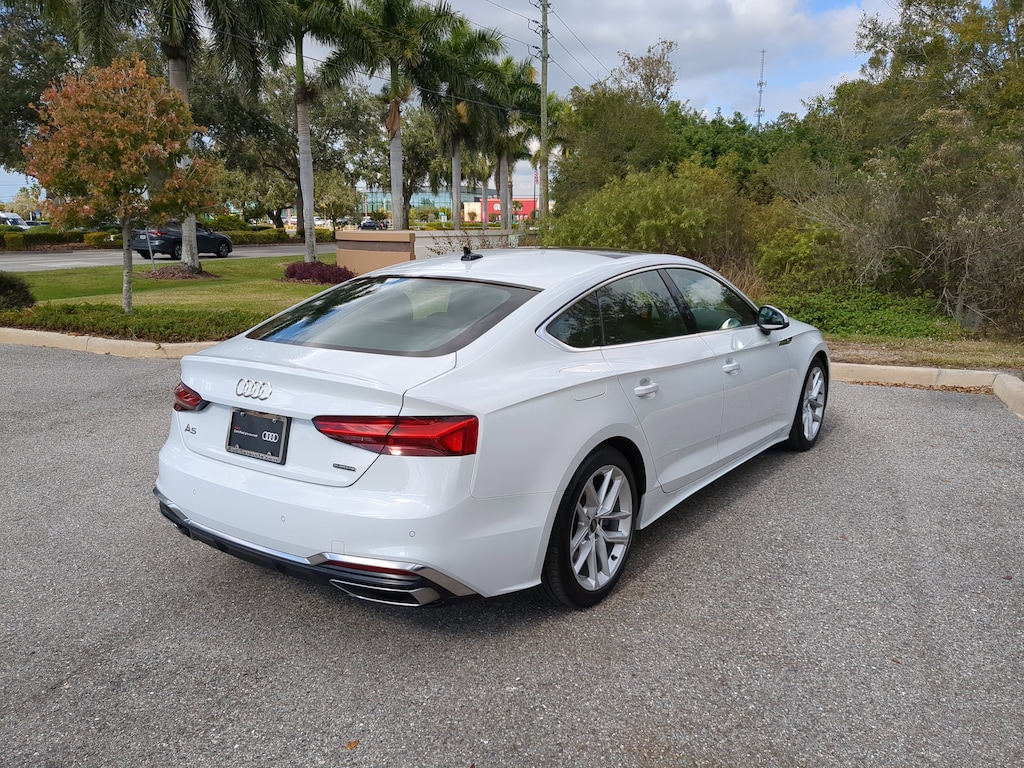 Pricing excludes tax, tag, title and pre-delivery service fee of $999 and private tag agency fee of $24.40. *See below for details..Carfax 1 Owner!..Audi Certified!..This All Wheel Drive A5 Sportback Premium S-Line includes Convenience Package with a Backup Camera System..Audi Side Assist Blind Spot Warning..Rear Cross Traffic Alert..Lane Departure Warning..Adaptive Cruise Control with Traffic Jam Assist..Audi Active Lane Assist..Audi Pre-Sense Basic..Audi Pre-Sense City Forward Collision Warning and Avoidance System..Audi Smartphone Interface with Wireless Apple Carplay and Android Auto..Satellite Radio and USB Ports..Bluetooth for Phone and Audio..10" Touchscreen..Front/Rear Park Assist Sensors..Power Panoramic Sunroof..18" Alloy Wheels..3-Zone Climate Control..Audi Connect Wi-Fi System..Power Adjustable, Heated Sport Leather Seats..Power Tailgate..Matrix-Design LED Headlamps..2.0L 261 HP 4 Cylinder Turbo with a 7 Speed Automatic Transmission..All power equipment and much more..Call Our Sales Team Now at 941-922-0000 for More Info, a Test Drive Appointment or to have a Custom Video Emailed or Sent to your Smartphone on this Car..Fast Out of State Shipping Available!..Over 125 components are inspected by Audi trained technicians to ensure each Audi Certified pre-owned vehicle is in optimal condition. Only after this comprehensive dealer inspection are we confident in backing the vehicle with our Audi Certified pre-owned Limited Warranty, which is more than a seal of approval, it's a badge of honor. When the Audi New Vehicle Limited Warranty expires, the Audi Certified pre-owned Limited Warranty becomes effective and provides coverage for a period of one year or 20,000 miles, whichever occurs first. (See dealer for details)..What the reviews say...The 2024 Audi A5 range blends svelte style with turbocharged punch and a high-tech cabin. The 2024 Audi A5 can be an SUV alternative in Sportback form. Sportbacks also earn a nod for their huge 22 cubic-foot trunks, which nearly double in size with the rear seatbacks folded. Consider how often you really need to haul a tall object, since the A5 Sportback has plenty of room for suitcases. Junior A7 style points, premium driving experience, hatchback practicality. An A5 for enthusiasts who have to have a sedan, the sleek Audi four-door hatchback swallows cargo and miles with equal deftness. The A5 Sportback four-door adds more practicality and better fuel economy to the list of winning ingredients that go into making the A5 coupe. That makes it easy to recommend to new-car shoppers and a shoo-in for our 2024 Editors' Choice awards. The Sportback variant uses an identical powertrain setup to the A5: a turbocharged inline-four bolted to a seven-speed dual-clutch automatic transmission and Quattro all-wheel drive. We'd also suggest the significantly more powerful 45 trim, its four-cylinder engine producing 261 horsepower versus the 40's 201. We haven't tested the newest model year yet. However, we called the last-generation engine that made 252 hp "one of the best of its ilk." We stand by that, and believe nine more horses is just a little more of a really good thing. In our tests, the previous-generation sedan got from zero to 60 mph in 5.0 seconds. The updated 45 trim should be similarly quick. The A5 Sportback starts with the supple, confident driving experience of the A5 coupe, then adds two more doors and extra luggage space.