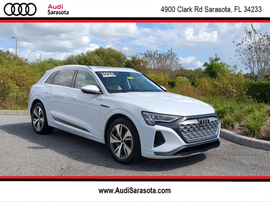 Pricing excludes tax, tag, title and pre-delivery service fee of $999 and private tag agency fee of $24.40. *See below for details..Audi Certified!..Carfax 1 Owner!..Wow this All Wheel Drive Q8 e-tron Premium Plus Quattro includes the AC Charging Package with 114 kWh Battery with Dual Electric Motors with 402 HP..Automatic Transmission..170 kW DC Fast Charge Capability..Animation for Headlights & Taillights..Bang & Olufsen Sound System with 3D Sound..Matrix LED Headlights..10.1" Upper Screen..8.6" Lower Screen..12.3" Audi Virtual Cockpit Plus..Dual Pane Acoustic Glass for Side Door Windows..Heated Rear Seats..Illuminated..Front & Rear Aluminum Door Sill Inlays..Power Adjustable, Heated & Ventilated Front Seats..LED Interior Lighting Package..Top View Camera System..Traffic Sign Recognition..Wireless Phone..Charging Pad..20" Alloy Wheels with 4 Brand New Tires..19.2 kW AC On-Board Charger..2nd AC Charge Port (passenger side)..Adaptive Air Suspension..Adaptive Cruise Assist with Lane Guidance..Audi Advanced Key and Hands-Free Power Tailgate..Wireless Apple CarPlay/Android Auto..Bluetooth..USB Ports..Audi MMI Navigation Plus with MMI Touch Response..Audi Smartphone Interface..4-Zone Automatic Climate Control with Heat Pump and Comfort Pre-Conditioning..HomeLink..Heated, Auto-Dimming, Power-Folding Exterior Mirrors..Panoramic Sunroof..Satellite Radio..LED Headlights..High Beam Assist..Automated Parking System..Front Cross Traffic Warning.. Lane Departure Warning..Audi Side Assist Blind Spot Warning..Rear Cross Traffic Warning and much more..The Original Price Was $83,630.00..All pre-owned cars regardless of make and model are driven and evaluated by our highly qualified service personnel. Call Our Sales Team Now at 941-922-0000 for More Info, a Test Drive Appointment or to have a Custom Video Sent to you on this Vehicle. Fast Out Of State Shipping Available..Over 125 components are inspected by Audi trained technicians to ensure each Audi Certified pre-owned vehicle is in optimal condition. Only after this comprehensive dealer inspection are we confident in backing the vehicle with our Audi Certified pre-owned Limited Warranty, which is more than a seal of approval, it's a badge of honor. When the Audi New Vehicle Limited Warranty expires, the Audi Certified pre-owned Limited Warranty becomes effective and provides coverage for a period of one year or 20,000 miles, whichever occurs first. (See dealer for details)..What the reviews say about this car..Hushed interior, spacious for adults in both rows, luxurious, techy cabin. As Audi's flagship EV SUV, the Q8 e-tron adheres closely to the brand's luxury and technology-forward ethos to good effect. High-tech features dot the Q8 e-tron's hushed cabin, which is something Audi loyalists have come to expect. The Q8 e-tron comes with a battery pack that provides a usable real-world driving range that promises to be competitive with that of other luxury EV SUVs. Plus, it can be charged quickly at a public charging station if you're traveling long distances. Our driving impressions revealed that the Q8 e-tron was swift and composed. Its snappy acceleration is typical of electric vehicles, and the smooth, quiet ride quality confirmed its luxury bona fides.