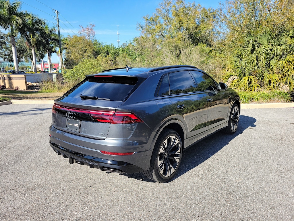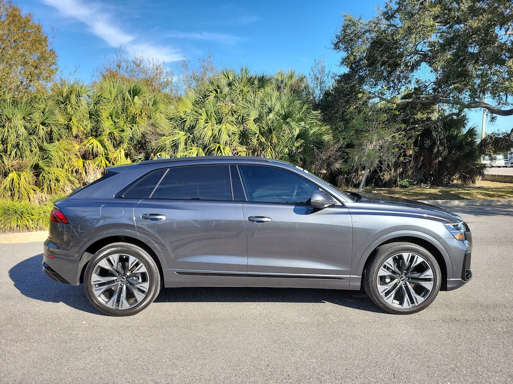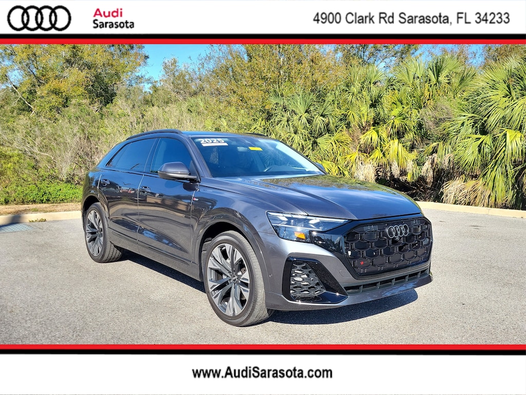 Pricing excludes tax, tag, title and pre-delivery service fee of $999 and private tag agency fee of $24.40. *See below for details..Carfax 1 Owner!..Audi Certified!..This All Wheel Drive Q8 Premium Plus Quattro includes Executive, S-Line Style & Black Optic Packages with a Turbocharged 3.0L 335 HP V6..8 Speed Automatic Transmission..Audi Side Assist Blind Spot System..Lane Departure Warning..Rear Cross Traffic Alert..Audi Adaptive Cruise Assist with Lane Guidance..Audi Phone Box with Wireless Charging..Heated Steering Wheel..Top View Camera System..Audi Pre-Sense Basic and Front with Forward Collision Warning and Avoidance System..12.3" Audi Virtual Cockpit Plus..10.1" Touchscreen..8.6" Lower Touchscreen..22" Alloy Wheels..4-Zone Climate Control..Heated Auto-Dimming Power Folding Exterior Mirrors..Navigation System..Panoramic Sunroof..AppleCarplay/Android Auto..Bang & Olufsen 3D Sound System..Satellite Radio..Bluetooth for Phone and Audio..Adaptive Damping Suspension..Power Adjustable, Heated/Ventilated Leather Seats..Heated Steering Wheel..Power Tailgate..USB Ports..HD Matrix-Design LED Headlamps with High Beam Assist..Black Roof Rails..High-Gloss Black Exterior Elements..Tow Hitch..Quattro AWD System..Dual-Pane Acoustic Glass for Side Windows.Heated Rear Seats.Power Rear Side Windows.Power Soft-Closing Doors..All power equipment and much more..Over 125 components are inspected by Audi trained technicians to ensure each Audi Certified pre-owned vehicle is in optimal condition. Only after this comprehensive dealer inspection are we confident in backing the vehicle with our Audi Certified pre-owned Limited Warranty, which is more than a seal of approval, it's a badge of honor. When the Audi New Vehicle Limited Warranty expires, the Audi Certified pre-owned Limited Warranty becomes effective and provides coverage for a period of of one year or 20,000 miles, whichever occurs first. (See dealer for details)..Call Our Sales Team Now at 941-922-0000 for More Info, a Test Drive Appointment or to have a Custom Video Sent to you on this Car. Fast Out of State Shipping Available!..All pre-owned cars regardless of make and model are driven and evaluated by our highly qualified service personnel. We invite you to come see our brand new state of the art dealership and take a test drive with one of our highly trained Audi Brand Specialists. You will be glad you did..What the reviews say about this car..Dynamically impressive, super comfortable, beautifully finished cabin. We like the 2025 Audi Q8's premium cabin and comfortable ride and seats. An update last year brought new styling and more standard features. The Q8 handles admirably through tight and sweeping corners alike. The suspension is properly buttoned-down in Sport mode, and body roll is nicely controlled. The Q8 offers plenty of room. The space up front is generous even if the lower roofline gives the impression of less headroom than there is. The rear seating is surprisingly opulent, with excellent legroom, lots of toe clearance, and ample headroom. The wide rear bench can hold three adults in agreeable comfort.Is the Q8 a good value? The Q8 exudes quality from the inside out. It's not just nice materials the execution of the design and attention to detail also make the Q8 feel special. One interesting design detail is the use of frameless windows in the mold of a sports car. This is a rare feature for an SUV, yet the doors are solid and airtight. The Q8 scores big points with its sporty styling, and thankfully it has the performance chops to back it up. The Q8 is luxe inside and filled with modern tech. In typical fashion, Audi has crafted a sophisticated and sturdy environment inside the Q8. The materials are premium, and the panels are expertly aligned.