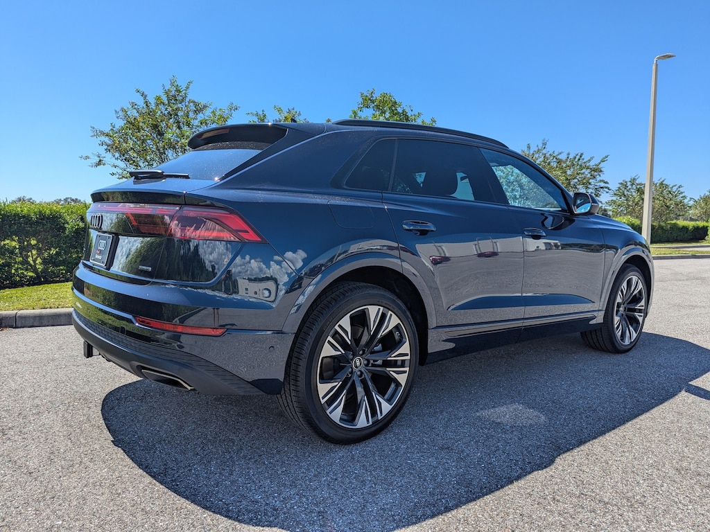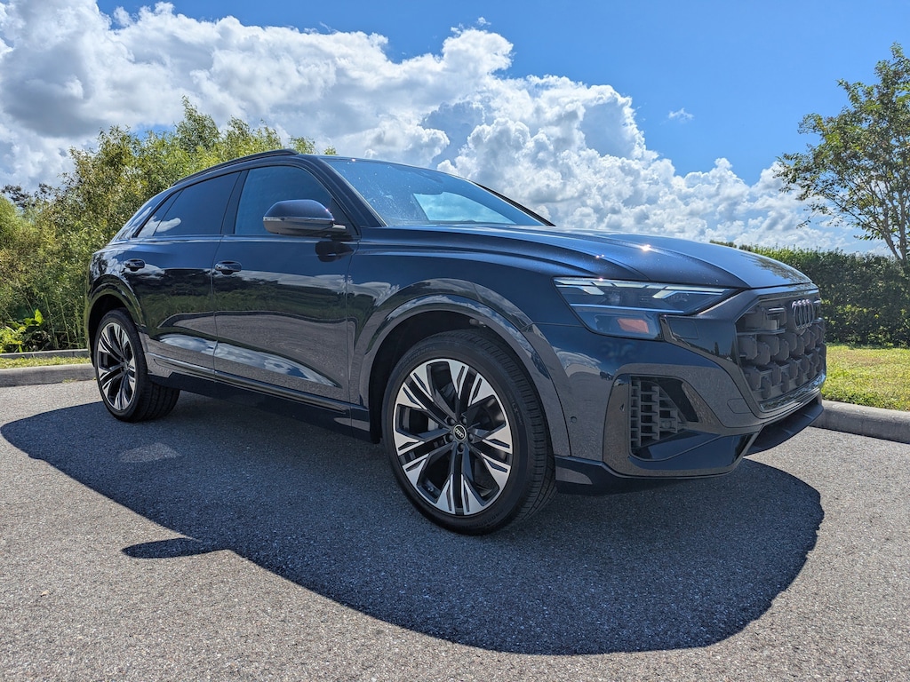 CONVENIENCE PACKAGE -inc: Heated Steering Wheel, Wireless Phone Charging Pad, Top View Camera System w/Virtual 360 View, BLACK OPTIC PACKAGE -inc: Black Exterior Trim, door blades, grille, roof rails and window surrounds, Wheels: 22" 5-Double-Arm Design Bicolor Finish, Tires: 285/40R22 110H XL All-Season, Anthracite Gray Audi Rings, Dark Chrome Exhaust Tips , FRONT & REAR DOORS AUDI BEAM-RINGS -inc: lower door trim LED light displaying Audi logo (4 rings), AUDI GUARD WHEEL LOCK KIT, AUDI GUARD CARGO MAT -inc: heavy duty trunk liner w/Q8 logo, Wireless Phone Connectivity, Window Grid Diversity Antenna, Wheels: 21" 5-W-Spoke Design Bicolor Finish, Valet Function, Trunk/Hatch Auto-Latch.
