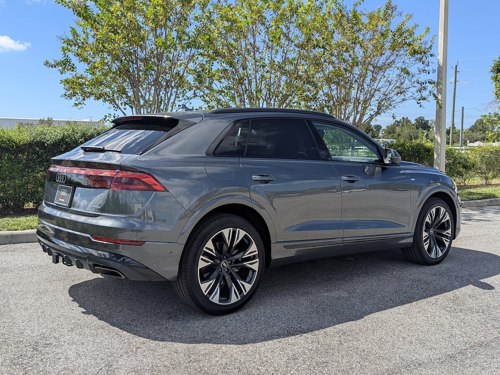 PREMIUM PLUS PACKAGE -inc: Bang & Olufsen 3D Premium Sound System, 4-Zone Automatic Climate Control, Front Seats w/Ventilation, 4-way power lumbar for passenger, Illuminated Door Sills, Heated Steering Wheel, Wireless Phone Charging Pad, Top View Camera System w/Virtual 360 View, LED Interior Lighting Plus Package, EXECUTIVE PLUS PACKAGE -inc: Comfort Adaptive Air Suspension, Power Rear Side Windows, manual tailgate sunshades, Control Buttons in Gloss Black w/Haptic Feedback, Heated Rear Seats, Dual-Pane Acoustic Glass for Side Windows, Power Soft-Closing Doors, BLACK OPTIC PACKAGE -inc: Black Exterior Trim, door blades, grille, roof rails and window surrounds, Wheels: 22" 5-Double-Arm Design Bicolor Finish, Tires: 285/40R22 110H XL All-Season, Anthracite Gray Audi Rings, Dark Chrome Exhaust Tips , AUDI GUARD WHEEL LOCK KIT, AUDI GUARD CARGO MAT -inc: heavy duty trunk liner w/Q8 logo, Wireless Phone Connectivity, Window Grid Diversity Antenna, Wheels: 21" 5-W-Spoke Design Bicolor Finish, Valet Function, Trunk/Hatch Auto-Latch.