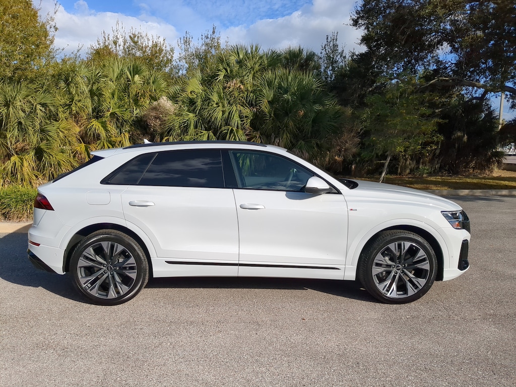 Delivers 23 Highway MPG and 17 City MPG! This Audi Q8 delivers a Intercooled Turbo Gas/Electric V-6 3.0 L/183 engine powering this Automatic transmission. TRAILER HITCH -inc: 7,700 lbs, towing capacity, 7-Pin Adapter, S LINE BLACK OPTIC PACKAGE -inc: 22" 5-Double-Arm Design Wheels w/Bicolor Finish, Black Exterior Trim, door blades, grille, roof rails and window surrounds, Anthracite Gray Audi Rings, 285/40R22 110H XL All-Season Tires, Illuminated S Line Door Sills, S Line Exterior, Dark Chrome Exhaust Tips, PREMIUM PLUS PACKAGE -inc: Power Rear Side Windows w/Manual Tailgate Sunshades, Bang & Olufsen Premium Sound System w/3D Sound, 4-Zone Automatic Climate Control, 4-Way Power Lumbar for Passenger Seat, Front Seats w/Ventilation, Top View Camera System w/Virtual 360 View, Adaptive Air Suspension, Control Buttons in Gloss Black w/Haptic Feedback, Heated Steering Wheel, Illuminated Door Sills, Dual-Pane Acoustic Glass for Side Windows, Heated Rear Seats, LED Interior Lighting Plus Package.