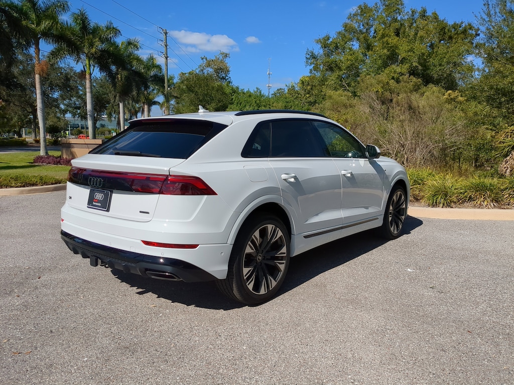 Scores 23 Highway MPG and 17 City MPG! This Audi Q8 boasts a Intercooled Turbo Gas/Electric V-6 3.0 L/183 engine powering this Automatic transmission. TRAILER HITCH -inc: 7,700 lbs, towing capacity, 7-Pin Adapter, S LINE BLACK OPTIC PACKAGE -inc: 22" 5-Double-Arm Design Wheels w/Bicolor Finish, Black Exterior Trim, door blades, grille, roof rails and window surrounds, Anthracite Gray Audi Rings, 285/40R22 110H XL All-Season Tires, Illuminated S Line Door Sills, S Line Exterior, Dark Chrome Exhaust Tips, PREMIUM PLUS PACKAGE -inc: Power Rear Side Windows w/Manual Tailgate Sunshades, Bang & Olufsen Premium Sound System w/3D Sound, 4-Zone Automatic Climate Control, 4-Way Power Lumbar for Passenger Seat, Front Seats w/Ventilation, Top View Camera System w/Virtual 360 View, Adaptive Air Suspension, Control Buttons in Gloss Black w/Haptic Feedback, Heated Steering Wheel, Illuminated Door Sills, Dual-Pane Acoustic Glass for Side Windows, Heated Rear Seats, LED Interior Lighting Plus Package.