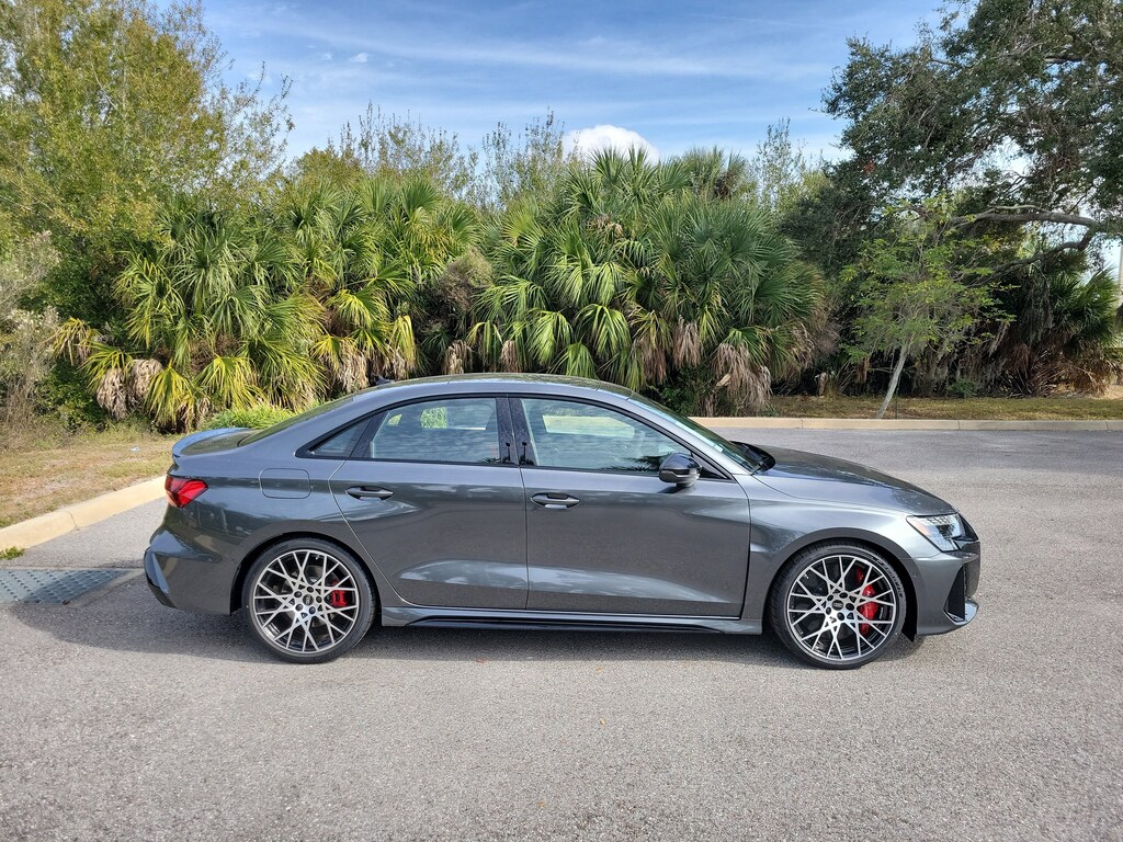 Boasts 29 Highway MPG and 20 City MPG! This Audi RS 3 delivers a Intercooled Turbo Premium Unleaded I-5 2.5 L/151 engine powering this Automatic transmission. SPORT EXHAUST SYSTEM W/BLACK TIPS, RS DESIGN PACKAGE - RED -inc: center bar of air vents in red, red edging on seat belts and seat shoulders in express red Dinamica, Floor Mats w/RS Logo & Express Red Stitching on Piping, DYNAMIC PLUS PACKAGE -inc: Ultra High Performance Summer Tires, 180 mph Top Speed Limiter, Carbon Engine Cover, Ceramic Front Brakes w/Red Calipers.