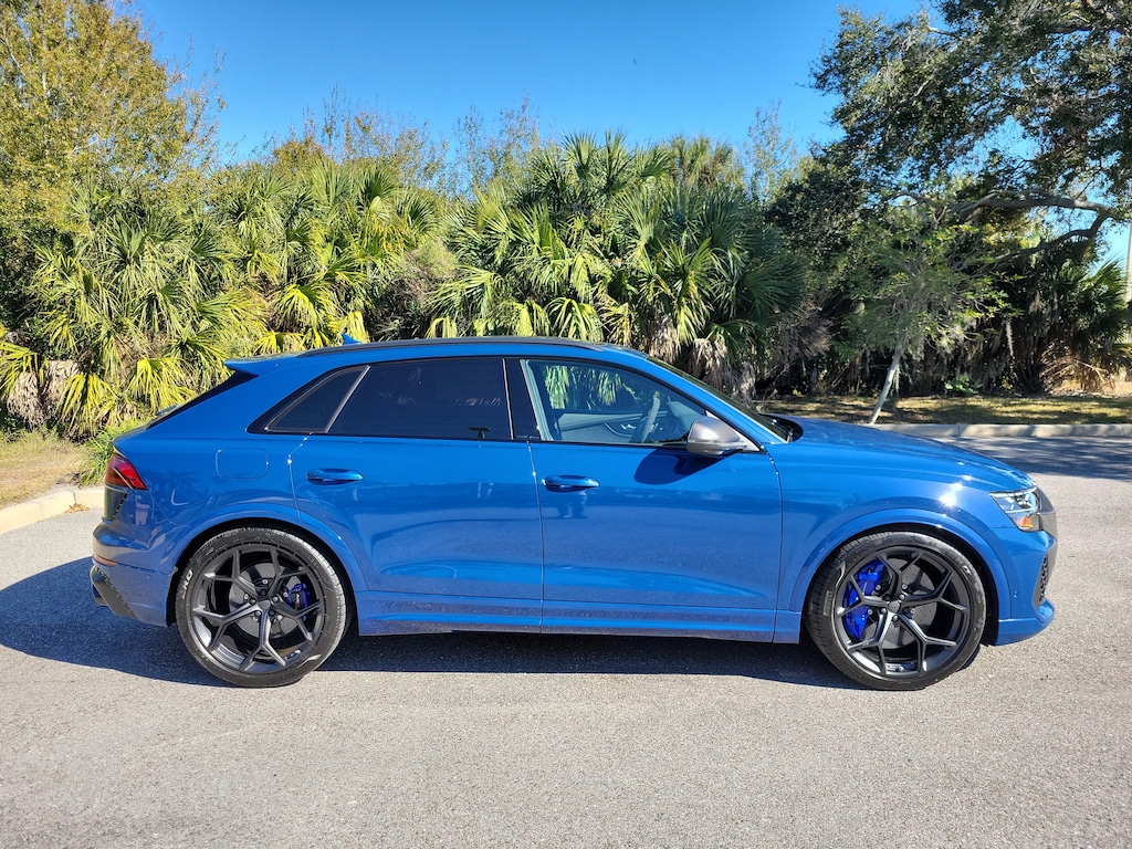 Boasts 20 Highway MPG and 14 City MPG! This Audi RS Q8 delivers a Twin Turbo Gas/Electric V-8 4.0 L/244 engine powering this Automatic transmission. TRAILER HITCH -inc: 7,700 lbs, towing capacity, 7-Pin Adapter, RS SPORT EXHAUST SYSTEM, RS DESIGN PACKAGE - BLUE -inc: blue contrast stitching on steering wheel, door armrests and center console sides, Alcantara Covered Steering Wheel, RS Logo Floor Mats w/Gray Contrast Stitching, Blue Seat Belts, Dinamica Covered Shift Lever & Center Console Sides.