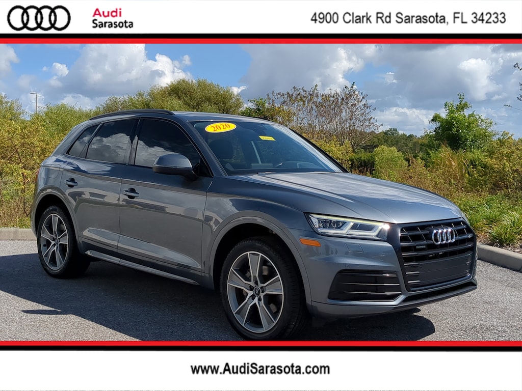 Pricing excludes tax, tag, title and pre-delivery service fee of $999 and private tag agency fee of $24.40. *See below for details..This Well Maintained, All Wheel Drive Q5 Premium Plus Quattro includes Black Optic Package with Factory Navigation..Audi Side Assist Blind Spot System..Audi Virtual Cockpit..Bang & Olufsen 3D Audio System..Apple CarPlay and Android Auto..Backup Camera..Rear Cross Traffic Alert..Audi Phone Box with Wireless Charging..Satellite Radio..USB Port..Panoramic Sunroof..Audi Connect Wi-Fi System..Power Tailgate..Power Adjustable, Heated Leather Seats with Power Lumber..20" Alloy Wheels..3-Zone Climate Control..Xenon Plus Headlights..Matte Black Roof Rails..Titanium Black Exterior Trim..All power equipment and much more...All pre-owned cars regardless of make and model are driven and evaluated by our highly qualified service personnel. We invite you to come see our brand new state of the art dealership and take a test drive with one of our highly trained Audi Brand Specialists. You will be glad you did..Call Our Sales Team Now at 941-922-0000 for More Info, a Test Drive Appointment or to have a Custom Video Sent to you on this Car. Fast Out of State Shipping Available!..What Edmunds.com says about this car..Quiet, comfortable cabin features top-notch interior craftsmanship. All-wheel drive comes standard. Array of technology options. In the span of just a decade, the Audi Q5 has gone from an unassuming little crossover SUV to Audi's sales leader. In fact, so successful was the original design that Audi has overhauled the Q5 only once in its lifetime. The newest version, introduced in 2018, has continued the Q5's upward trajectory and remains one of our favorites in a competitive segment. We like the compact dimensions of the Q5 and the ease with which passengers can get in and out of it, even in tight parking spots. And with its quality materials and clean design, the interior continues to impress us as well. Other advantages include advanced but easy-to-use technology features and smooth road manners. The popular Q5 strikes a pleasing and satisfying balance of luxury and comfort. The Audi Q5 is compelling enough to contend for the top in the compact luxury SUV class. It gets high scores for its impeccably designed interior and easy-to-use technology. The best part about the Q5 is its great balance of performance and drivability. The seven-speed dual-clutch automatic shifts quickly and smoothly, and it feels well-tuned for the engine. And because of the Q5's relatively compact size, it's easy to squeeze into small parking spots. The Audi Q5 does well on every comfort metric. Like most of the cars in the class, it's easy to drive for many hours at a time. Low levels of interior noise add to the comfort. Road noise is muted to barely noticeable levels, and wind noise is essentially absent at highway speeds. The Q5's interior design continues to impress us. The design is minimal and tidy, and the smart use of multipurpose switches and knobs reduces the clutter of buttons found in rivals. Even though the Q5 isn't a big vehicle, it feels big inside. Headroom and lateral space in front and back are generous, and there's plenty of legroom for adults in the rear seats. Visibility is also quite good. This is one of the few SUVs that doesn't require constant monitoring of the backup camera when you're maneuvering in tight spaces.