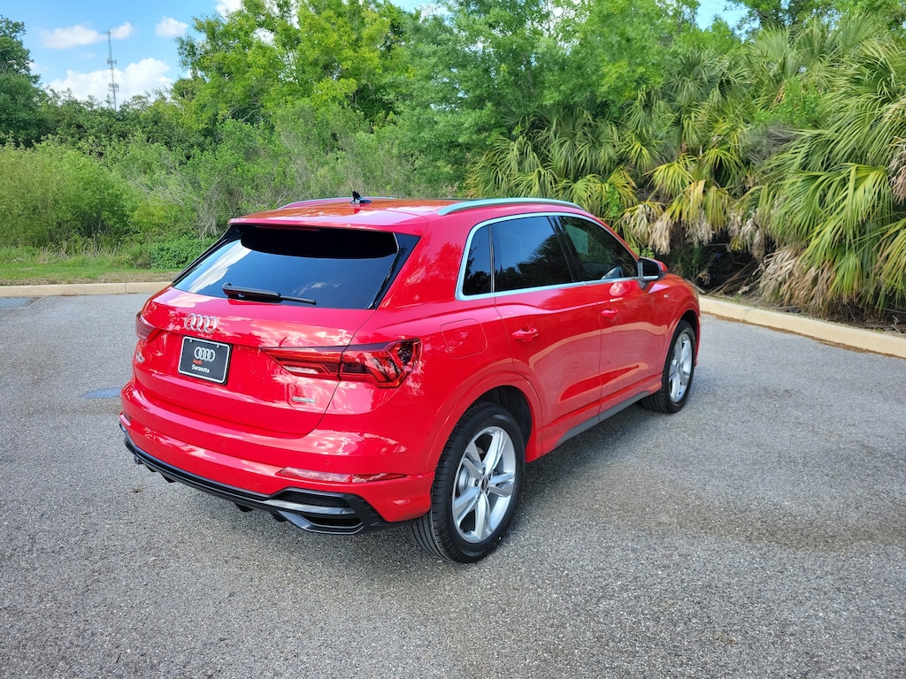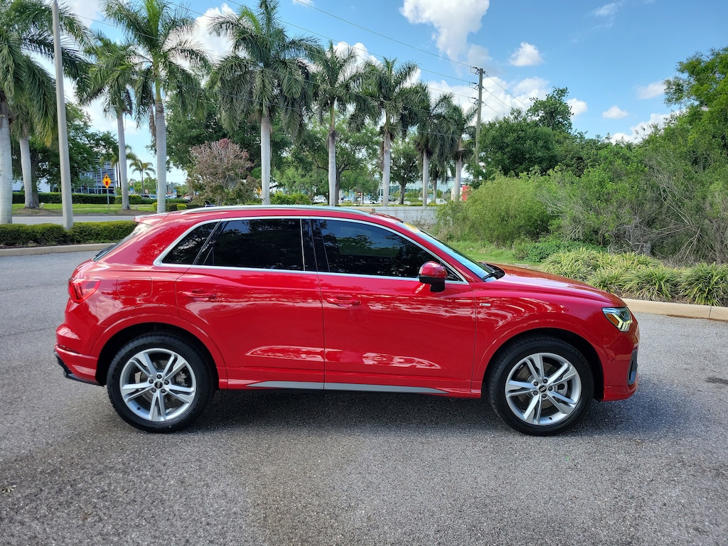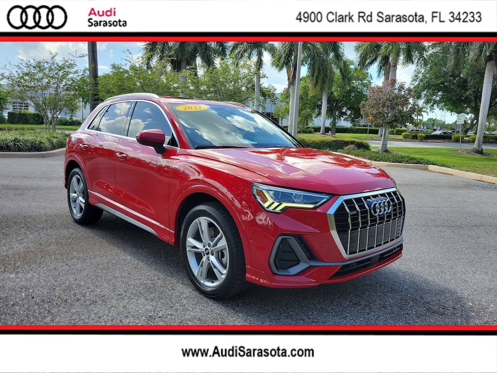 Pricing excludes tax, tag, title and pre-delivery service fee of $999 and private tag agency fee of $24.40. *See below for details..Carfax 1 Owner!..Wow this All Wheel Drive Q3 Premium Quattro includes Premium Plus, Parking Assistance & 19" Wheel Packages with Audi Side Assist Blind Spot System with Rear Cross Traffic Alert..Lane Departure Warning..Park Steering Assist..Adaptive Cruise Assist with Traffic Jam Assist..Aluminum Spectrum Inlays..Audi Phone Box with Wireless Charging..Topview Camera System..Audi Pre Sense Front (Forward Collision Warning and Avoidance Assist)..Audi Pre Sense Basic..Audi Advanced Key..Audi Parking System Plus..LED Headlamps..Panoramic Moonroof..Apple CarPlay & Android Auto..3- Zone Climate Control..8.8" Touchscreen..Bluetooth..USB Ports..Power Tailgate..19" Alloy Wheels..Customizable LED Interior Lighting Package Plus..Full LED Headlights with Unique DRL Signature..HomeLink Garage Door Opener..Stainless Steel Trunk Sill..Power Adjustable, Heated Leather Seats..Satellite Radio..2.0L 228 HP 4 Cylinder Turbo..8 Speed Automatic Transmission..Alarm with Motion Sensor..LED Interior Lighting Package..Quattro AWD System..All power equipment and much more...Over 125 components are inspected by Audi trained technicians to ensure each Audi Certified pre-owned vehicle is in optimal condition. Only after this comprehensive dealer inspection are we confident in backing the vehicle with our Audi Certified pre-owned Limited Warranty, which is more than a seal of approval, it's a badge of honor. When the Audi New Vehicle Limited Warranty expires, the Audi Certified pre-owned Limited Warranty becomes effective and provides coverage for a period of one year or 20,000 miles, whichever occurs first. (See dealer for details)..All pre-owned cars regardless of make and model are driven and evaluated by our highly qualified service personnel. Call Our Sales Team Now at 941-923-1700 for More Info, a Test Drive Appointment or to have a Custom Video Sent to you on this Vehicle. Fast Out Of State Shipping Available..What the reviews say about this car...Packed with modern technology features. Interior is lined with high-quality materials. Quiet cabin and comfortable ride quality. More passenger room than most subcompact SUVs. With its Q3, Audi was one of first automakers to introduce an extra-small luxury SUV. Now in its second generation that debuted a couple of years ago, the Q3 is more affordable than Audi larger Q5's but has nearly all of the same convenience, technology and safety features. It's a smart way to get an Audi without blowing up your budget. No gaps, creaks or cheap plastics here. The surfaces inside the Q3 are tastefully put together and great to the touch. The S Line spices things up with natural wood and matte inlays. Sharp styling, plentiful tech features, spunky driving demeanor. If you took Audi's mid-size Q8 SUV and hit it with a shrink ray, it would turn into the 2021 Q3. From its large trapezoidal grille to aggressively canted rear hatch, the junior Audi SUV does its best impression of the brand's larger crossovers. Inside, buyers will find a tech-heavy interior, which is expected from modern Audis. Its suspension damped out all but the harshest road imperfections. Direct steering with a light-to-the-touch feel gives the Q3 a sense of agility. The little SUV also moves with the same grace as its larger siblings when pitched down a twisty section of road. The second row is roomy, and cargo space is ample when the rear seats are folded. The 2021 Audi Q3 is bulky but not brash, with good tech and space inside for passengers and gear. Power is ample and ready in the 2021 Q3. Audi's smallest crossover is still big, and that's better for cargo and people.