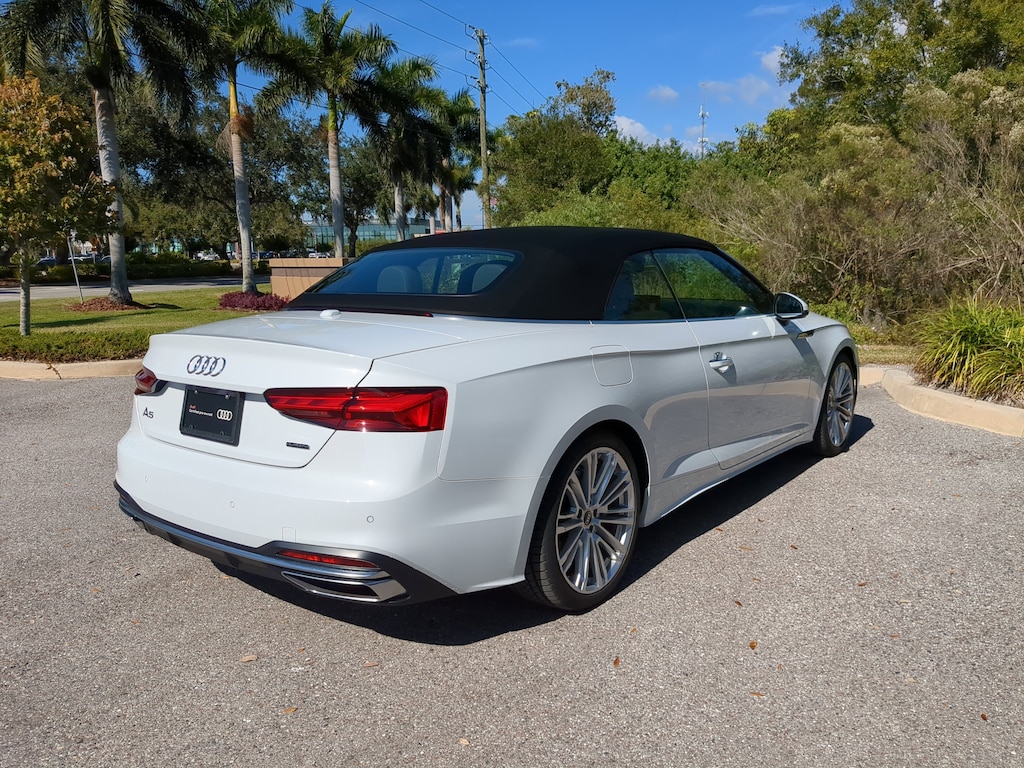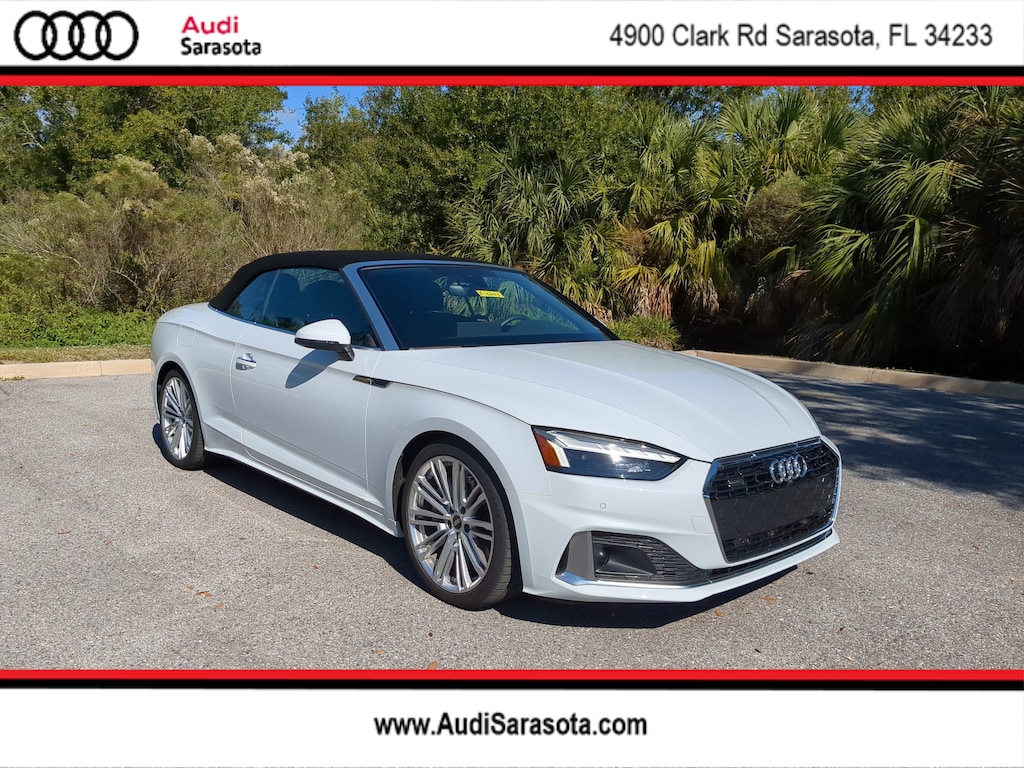 Pricing excludes tax, tag, title and pre-delivery service fee of $999 and private tag agency fee of $24.40. *See below for details..Not a Misprint!, ONLY 1,541 MILES!..Carfax 1 Owner!..Audi Certified!..Wow this All Wheel Drive A5 Premium Plus Quattro Convertible includes Warm Weather & Navigation Packages with Audi Side Assist Blind Spot System with Rear Cross Traffic Alert..Forward Collision Mitigation..Surround View Camera..Adaptive Cruise Control with Traffic Jam Assist..Audi Active Lane Assist..Hands-On Detection Steering Wheel..Matrix-Design LED Headlights..12.3" Audi Virtual Cockpit..10.1" Touchscreen..Neck-Level Heating System..Audi MMI Navigation Plus,,Audi Smartphone Interface with Wireless Apple Carplay..Android Auto..19 Speaker Bang & Olufsen Sound System with 3D Sound..Satellite Radio..Bluetooth for Phone and Audio..USB Port..19" Alloy Wheels..3-Zone Climate Control..Power Convertible Top..Power Adjustable, Heated/Ventilated Leather Seats..2.0L 261 HP 4 Cylinder Turbo with a 7 Speed Automatic Transmission..All power equipment and much more..Call Our Sales Team Now at 941-922-0000 for More Info, a Test Drive Appointment or to have a Custom Video Emailed or Sent to your Smartphone on this Car..Fast Out of State Shipping Available!...Over 125 components are inspected by Audi trained technicians to ensure each Audi Certified pre-owned vehicle is in optimal condition. Only after this comprehensive dealer inspection are we confident in backing the vehicle with our Audi Certified pre-owned Limited Warranty, which is more than a seal of approval, it's a badge of honor. When the Audi New Vehicle Limited Warranty expires, the Audi Certified pre-owned Limited Warranty becomes effective and provides coverage for a period of one year or 20,000 miles, whichever occurs first. (See dealer for details)..What the reviews say...Style mavens will find the 2022 Audi A5 coupe and Cabriolet convertible models more eye-catching than the A4 sedan while pragmatists will be happy to know they require few compromises to practicality. Both A5 body styles are sophisticated, upscale, and athletic, making them a great choice for luxury buyers who also enjoy driving. The coupe and convertible are both powered by a gutsy 261-hp turbocharged four-cylinder paired with standard all-wheel drive. While we haven't driven the 2022 A5 to sample the turbocharged 2.0-liter with the new 12-volt hybrid setup, we're intrigued by the extra boost of power from 248 to 261 horsepower. Older nonhybrid examples with the lower output proved to be downright quick, sprinting to 60 mph in just 5.0-seconds, just 0.6 second behind the 400-hp Infiniti Q60 Red Sport. Composed and planted when cruising, the A5 comes alive on twisty roads; accurate, well-weighted steering compliments the suspension's agility, and the A5 is easy to drive quickly. The Quattro all-wheel-drive system helps, too, aiding the chassis' balance and providing faultless power delivery out of tight corners. Stylish, modern, and well built, the A5's cabin is comfortable and the design will surely stand the test of time. The A5's interior oozes quality from every panel. In our Premium Plus test car, finely grained, soft-touch plastics mingled with textured aluminum trim. As you slide behind the leather-wrapped steering wheel, a motorized arm pushes the seatbelt forward to within easy reach of your left shoulder. Everything looks and feels beautifully assembled, durable, and solid. Audi offers plenty of infotainment features standard on all A5 models, including Bluetooth phone and audio streaming, power outlets, and USB connectivity. A 10.1-inch infotainment touchscreen is a floating element atop the A5's dashboard and features both Apple CarPlay and Android Auto integration. Navigation is optional, as is a 19-speaker Bang & Olufsen sound system.