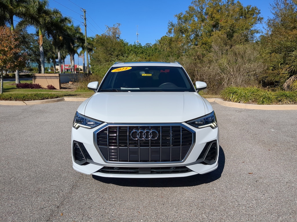 Pricing excludes tax, tag, title and pre-delivery service fee of $999 and private tag agency fee of $24.40. *See below for details..This All Wheel Drive Q3 Premium Plus S Line Quattro includes Black Optic Sport Package with Audi Side Assist Blind Spot Warning..Lane Departure Warning..Rear Cross Traffic Alert..Surround-View Camera..Adaptive Cruise Assist with Lane Guidance..Audi Pre Sense Front (Forward Collision Warning and Avoidance Assist)..Audi Pre Sense Basic..Audi Parking System Plus..Full LED Headlamps..High-Beam Assist..Apple CarPlay/Android Auto..Panoramic Moonroof..10.25" Digital Display..Alarm System with Motion Sensor..Audi Connect..3-Zone Climate Control..10.1" Touchscreen..Bluetooth for Phone & Audio..Wireless Phone Charging Pad..USB Ports..Power Tailgate..18" Alloy Wheels..Heated Leather S-Line Sport Seats..Satellite Radio..LED Interior Lighting Package..Alarm System..HomeLink..2.0L 228 HP 4 Cylinder Turbo..8 Speed Automatic Transmission..Audi Drive Select..All power equipment and much more..Includes The Balance Of Factory Warranty..Call Our Sales Team Now at 941-922-0000 for More Info, a Test Drive Appointment or to have a Custom Video Sent to you on this Car. Fast Out of State Shipping Available!..All pre-owned cars regardless of make and model are driven and evaluated by our highly qualified service personnel. We invite you to come see our brand new state of the art dealership and take a test drive with one of our highly trained Audi Brand Specialists. You will be glad you did..What the reviews say about this car...Quiet interior, balanced ride-and-handling equation, good standard tech including adaptive cruise. The least expensive SUV in the Audi lineup, the 2024 Q3 offers a petite take on the trademark design ethos that populates the entire Audi lineup. Indeed, its exterior shape looks every bit like a seven-tenths version of its Q5 sibling, and that characteristic extends to the interior, build quality, and driving personality. All-wheel drive is standard as is adaptive cruise assist; it complements the digital gauge display, touchscreen infotainment, and a host of driver assists to keep the Q3's tech-quotient class-competitive. The big news for 2024 is the inclusion of Adaptive Cruise Assist, adaptive cruise control, as standard equipment. Buyers who select the Convenience package will notice Homelink functionality (a garage door opener that can turn on lights) is now integrated into the rear-view mirror, and that wireless phone charging is also available. As it sits, the chassis and engine are well-mated for a pleasant and sometimes frisky driving experience. With the addition of adaptive cruise control and lane centering as standard equipment, the Q3 now provides a large package of driver aids on every model. Many rivals charge extra for those features. Front and rear parking sensors, emergency automatic braking and blind-spot warning are also included. Inside, you'll enjoy the crisp digital instrument panel and sizable center touchscreen. The Q3 has an accessible seating position that will meet the needs of most buyers. There's plenty of headroom up front and enough room for two adults to be comfortable in back. It's also pretty easy to see out of the Q3 thanks to big windows and a short hood. The rear door openings are wide enough that you can easily lean in and set up rear-facing car seats. The car seat anchors are simple to access, and there are three back anchors for overhead security. No gaps, creaks or cheap plastics here. The surfaces inside the Q3 are tastefully put together and great to the touch. The S line spices things up with natural wood and matte inlays.