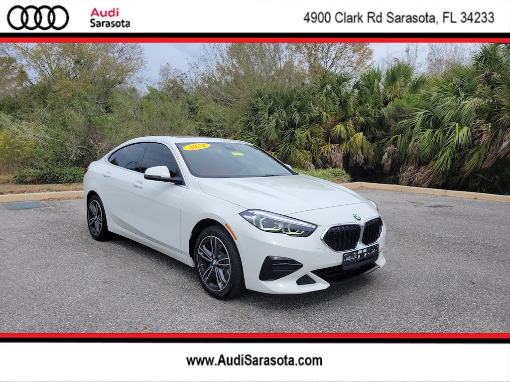 Pricing excludes tax, tag, title and pre-delivery service fee of $999 and private tag agency fee of $24.40. *See below for details..Only 21,858 Miles!..Wow this BMW 228i Gran Coupe 4Dr Sedan includes Convenience Package with Live Cockpit Pro with Navigation..Power Adjustable Heated Leather Seats..Comfort Access Keyless Entry..Lumbar Support..Panoramic Moonroof..Lights Package..Connected Package Pro..Heated Steering Wheel..Dynamic Cruise Control..10.25" Touchscreen..10.25" Digital Instrument Cluster..Blind Spot Monitor..Lane Departure Warning..Apple CarPlay and Android Auto Compatibility..Remote Software Upgrade Capable..Dual Zone Climate Control..17" Alloy Wheels..Backup Camera..Comfort Access..Active Driving Assistant..Park Distance Control..Satellite Radio..Bluetooth..USB Ports..Speed Limit Info..LED Headlights..High Beam Assist..Turbocharged 2.0L 228 HP 4 Cylinder..8 Speed Automatic Transmission..All power equipment and much more..Call Our Sales Team Now at 941-922-0000 for More Info, a Test Drive Appointment or to have a Custom Video Emailed or Sent to your Smartphone on this Car..Fast Out of State Shipping Available!..All pre-owned cars regardless of make and model are driven and evaluated by our highly qualified service personnel. We invite you to come see our brand new state of the art dealership and take a test drive with one of our highly trained Audi Brand Specialists. You will be glad you did..What the reviews say..Perky turbo four, simple interior controls, playful handling. Around town, the 228i feels sprightly and eager, and at the test track, it delivered a brisk 5.1-second run to 60 mph. Cabin styling matches that of modern BMWs such as the 3-series sedan and the X3 SUV. It's a simple driver-focused design featuring ambient interior lighting that illuminates the dashboard and door panels. BMW claims that rear-seat legroom is nearly the same as the larger 3-series sedan's. The standard sport seats are soft and supportive, and the side bolsters hold you in place without being overly tight. The climate control works well. The controls are easy to see and use thanks to dedicated buttons just beneath the infotainment screen. The dual-zone system kept the car even and cool on a bright sunny day, and the fans were quiet enough. The thing about any 2 Series is that its quick and nimble, seemingly made for canyon roads. A wider track at both ends (the distance between wheels on the same axle) not only makes it look more ready to rip through the curves, but its cornering talents are indeed heightened. As one of the most affordable new BMW vehicles, the 2022 2 Series still has an upscale cabin with quality materials and a well-considered layout. Space up front is fine. The seats are comfortable, bringing plenty of support for the sides and under the thighs. The new 2 Series coupe is longer, lower and wider than before. The long hood and short overhangs of both cars combine to give this latest 2 Series an unmistakably sporty aura. Although BMW makes some great 6-cylinder and 8-cylinder engines, even the relatively humble 4-cylinder units deliver their goods in a pleasing manner. The ones in the 2022 2 Series seem to have a little more muscle than their stated specifications. BMW tends to do that.