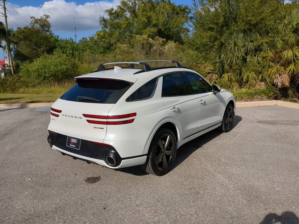 Pricing excludes tax, tag, title and pre-delivery service fee of $999 and private tag agency fee of $24.40. *See below for details..Carfax 1 Owner!..Wow this All Wheel Drive Genesis GV70 3.5T Sport Prestige includes Sport Advanced Package & Sport Prestige Package with a Twin-Turbocharged, 3.5L 375 HP V6 Engine..8 Speed Automatic Transmission..Forward Collision Avoidance Assist..Lane Keeping Assist..Lane Following Assist..Driver Attention Warning..Blind Spot Collision Avoidance Assist..Rear Cross Traffic Collision Avoidance Assist..Parking Distance Warning, Reverse..Safe Exit Assist..Surround View Monitor..Blind-Spot View Monitor..Remote Smart Parking Assist..Parking Distance Warning, Forward/Reverse..Parking Collision Avoidance Assist, Reverse..Advanced Rear Occupant Alert..12.3" 3D Digital Instrument Cluster..Head-Up Display..3-Zone Climate Control..Forward Attention Warning..Carbon Fiber Trim..Heated 2nd Row Seat..Manual Rear Door Shades..21" Sport Alloy Wheels..Nappa Leather Seating Surfaces..Leatherette Wrapped Upper Instrument Pane..Microfiber Suede Headliner..15 Speaker, Lexicon Premium Audio..Genesis Digital Key..Layered Edge Backlit Trim..Electronically Controlled Suspension with Road Preview..Panoramic Sunroof..Power Hands Free Smart Liftgate with Auto Open..Power Folding ECM Mirrors with Genesis Logo..High Beam Assist..Leather Seating Surfaces..Aluminum Trim with Haptic Carbon Pattern..Power Front Seats with 4-Way Power Lumbar..Power Cushion Extension, Bolster & Ergo Motion (Driver)..Heated and Ventilated Front Seats..Heated Steering Wheel..Smart Cruise Control..Intelligent Speed Limit Assist..Highway Driving Assist..14.5" Navigation System w/AM/FM/HD Radio..SiriusXM Radio..Wireless Apple CarPlay & Android Auto..Genesis Connected Services..Wireless Phone Charger..AWD..Fingerprint Authentication System and more..Includes The Balance Of Factory Warranty..Call Our Sales Team Now at 941-922-0000 for More Info, a Test Drive Appointment or to have a Custom Video Sent to you on this Car. Fast Out of State Shipping Available!..All pre-owned cars regardless of make and model are driven and evaluated by our highly qualified service personnel. We invite you to come see our brand new state of the art dealership and take a test drive with one of our highly trained Audi Brand Specialists. You will be glad you did..What the reviews say..Trending design inside and out, can't go wrong with either engine option. With high-style lines, a fashion-forward interior, solid performance, refined road manners, and superb value the GV70 nails its luxury-SUV mission. At Car and Driver, we judge vehicles by how well they execute their mission. The 2025 Genesis GV70's reason for being is to deliver refinement, style, and valueand it absolutely nails those goals. In fact, the GV70 blends those attributes so expertly that it landed a spot on our 10Best Trucks list for 2025. To do that in the hyper-competitive compact luxury SUV segment is even more impressive, fighting off established names such as the Audi Q5, the BMW X3, and the Mercedes-Benz GLC-class to rise to the top in our rankings. The entry-level engine is a feisty 300-hp turbocharged four-cylinder with plenty of zip but the optional 375-hp twin-turbo V-6 is the real performer, enabling a 60-mph run in 4.6 seconds in our testing. During our initial test drive, we noted a fair amount of athleticism, especially in the Sport Plus driving mode, and the twin-turbo V-6 pulled strong. The GV70 makes a strong styling statement. The Genesis GV70 can hustle. The 2025 Genesis GV70s cabin is a stunner. Its interior is divine to behold. Fold the 40/20/40 seat backs down and cargo space maxes out at 56.9 cubic feet of space. The GV70's touchscreen graphics are sharp, and the optional 15-speaker Lexicon sound system is an absolute banger with huge sound and fantastic adjustability. The Genesis GV70 is a striking SUV that catches more attention than most in its class.